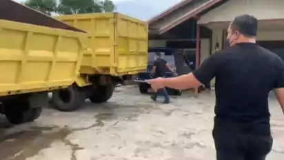 “Dari tangan kedua pelaku. Kami mengamankan barang bukti dua unit dump truk (DT) warna kuning, 1 drum berisikan 67 liter solar, 2 buah mesin pompa, 11 jerigen kosong ukuran 35 liter, 5 buah selang, 2 drum kosong, 3 buah corong minyak dan 1 buah gayung,” urai Kasat Reskrim AKP Gandha Syah Hidayat minggu (3/4/2022) pagi.