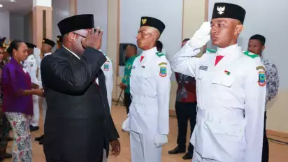 tvOnenews.com - Gubernur Papua Tengah, Meki Nawipa, resmi mengukuhkan 40 Pasukan Pengibar Bendera Pusaka (Paskibraka) Tingkat Provinsi Papua Tengah Tahun 2025 yang akan bertugas pada upacara peringatan Hari Ulang Tahun (HUT) Republik Indonesia ke-80.