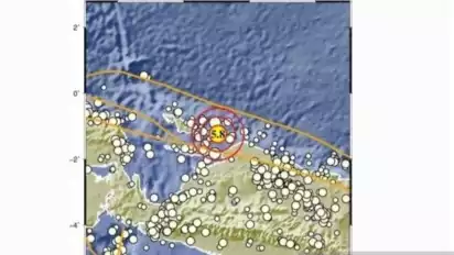 Jakarta - Badan Meteorologi, Klimatologi, dan Geofisika (BMKG) menyampaikan bahwa gempa dengan magnitudo 5,8 terjadi di timur laut Kepulauan Yapen di Papua pada Minggu pukul 12.49 WIB.