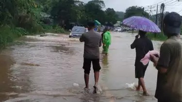 Banjir Bandang, Arus Lalu Lintas Jalan Nasional Di Sosok Terendam Air