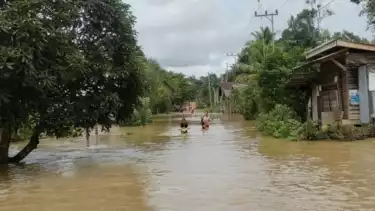 "Hari ini ketinggian air rata-rata mencapai 30 - 50 cm, kemaren diatas 70 cm Jalan di desa kami masih belum bisa dilalui karena masih terendam. Semoga saja dalam beberapa hari jni tidak ada lagi turun hujan," terang Kepala Desa Mirah, Harnes.