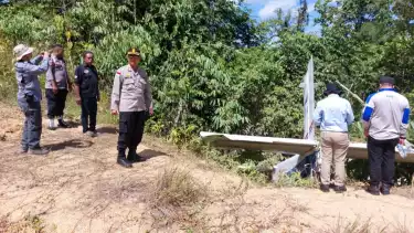 "Dari hasil investigasi diperoleh hasil bahwa badan pesawat jenis AMA PK - RCQ terbentur pada tunggak kayu maupun perbukitan dan terperosok ke dalam jurang dengan kedalaman ± 2 M,” ungkap Kapolres.