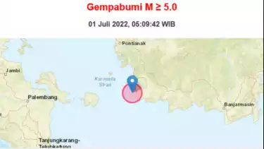 Gempa magnitudo: 5.0 terjadi kabupaten Ketapang, provinsi Kalimantan Barat pada Jumat 1 Juli 2022, pukul 05:09:42 WIB.
