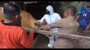 Kotawaringin Timur, Kalteng - Sebanyak 31 ekor sapi di 2 kecamatan yang ada di Kabupaten Kotawaringin Timur (Kotim) dipotong paksa karena telah terjangkit Penyakit Mulut dan Kuku (PMK). Pemerintah daerah Kotim pun segera membentuk Satgas pencegahan PMK untuk menanggulangi penyebaran penyakit tersebut.