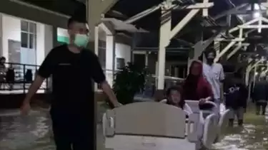 Pontianak - Banjir merendam wilayah Singkawang dan sekitarnya sejak Sabtu (27/8/2022) kemarin. Sebanyak 14 pasien RSUD Abdul Aziz Singkawang terpaksa dievakuasi, karena ketinggian air yang merendam bangsal pasien masih belum juga surut hingga Sabtu malam.