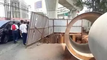 Sementara itu, pantauan Tvonenews.com di lokasi sekira pukul 14.30 WIB terdapat lubang besar dengan pagar seng yang mengelilinginya.