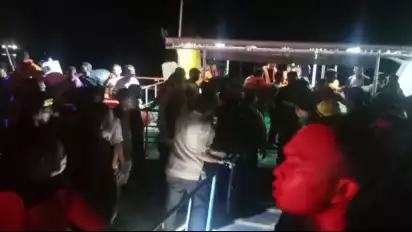 (Sejumlah Penumpang Keluar dari Kapal Motor Cepat Cantika Express 77 yang Alami Kebakaran)