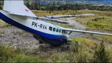 Puncak, Papua - Pesawat Reven Global Airtransport dengan nomor penerbangan PK-RVA yang bermuatan bahan makanan (Bama) dan 6 unit kendaran roda dua, dilaporkan tergelincir di Bandara Aminggaru, Ilaga, Kabupaten Puncak Papua, Selasa (25/10/2022) pukul 09.15 WIT.