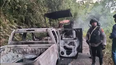 KKB melakukan pembakaran terhadap dua unit kendaraan milik Polres Kepulauan Yapne yang dibawa saat akan membersihkan lokasi pemalangan dan satu unit mobil mengalami rusak berat.