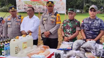 Aparat Gabungan Kota Jayapura Musnahkan 18 Kg Ganja dan 293 Liter Minuman Keras