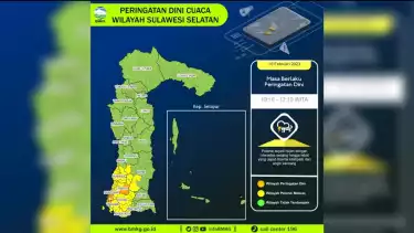 Makassar, tvOnenews.com - Badan Meteorologi, Klimatologi dan Geofisika (BMKG) Wilayah Makassar mengeluarkan peringatan dini cuaca Makassar yang akan diguyur hujan pada pagi hingga malam hari.