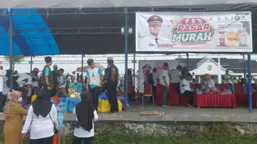 Luwu, tvOnenews.com - Unit Pengumpul Zakat atau UPZ Pemerintah Provinsi Sulawesi Selatan menggelar pasar murah di lapangan Andi Djemma, Belopa, Sulawesi Selatan, Jumat (17/2/2023). Pasar murah ini menyediakan 500 paket sembako berisi 2 liter minyak goreng, gula pasir dan terigu, masing-masing 1 kilogram.