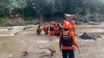 Proses pencarian melibatkan Basarnas gabungan dibantu masyarakat setempat.