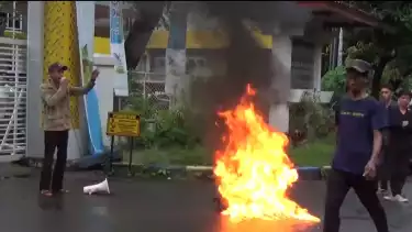 Makassar, tvOnenews.com - Puluhan mahasiswa dari berbagai aliansi melakukan aksi unjuk rasa di depan kantor Balai Besar Wilayah Sungai Pompengan-Jeneberang dengan membakar ban bekas sebagai bentuk protes terhadap Kepala Balai yang tidak mengganti rugi lahan warga seluas 42.97 Hektar pada Bendungan Paselloreng di Kabupaten Wajo, Sulsel, Senin (8/5/2023).