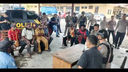 Yahokimo, tvOnenews.com - Sejumlah perwakilan tokoh masyarakat dari beberapa suku di kabupaten Yahokimo, Provinsi Papua Pegunungan mendatangi Polres Yahokimo bersama sejumlah tokoh masyarakat adat. Mereka mempertanyakan penangkapan puluhan warga suku Ngalik oleh polisi, Selasa (16/5/2023).