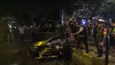 Gowa, tvOnenews.com - Mobil dinas milik Sekretaris Dewan (Sekwan) DPRD Kabupaten Jeneponto, bernomor plat merah dengan nomor polisi DD 10 G, terjun ke dalam saluran air sedalam 3 meter di Kabupaten Gowa, Sulawesi Selatan usai ditabrak mobil minibus dari arah belakang.