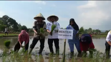 Takalar, tvOnenews.com - Menteri Pertanian Republik Indonesia, Syahrul Yasin Limpo, pulang kampung ke Kabupaten Takalar, melakukan tanam padi bersama warga Kale'lantang, Sulawesi Selatan.