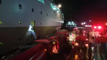 Parepare, tvOnenews.com -Kapal milik PT Pelni KM Bukit Siguntang terbakar saat hendak sandar di pelabuhan Nusantara, kota Parepare, Sulawesi Selatan.Asap tebal terlihat dari atas dek 5 kapal tersebut.Para penumpang yang panik berebutan untuk turun menghindari asap tebal.
