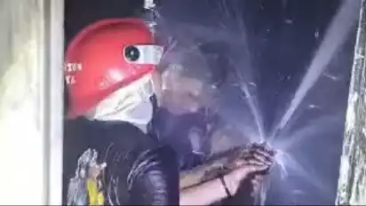 Api terlihat sudah berhasil dipadamkan dan saat ini sedang dilakukan proses pendinginan.
