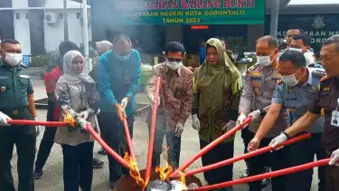 Kota Gorontalo, tvOnenews.com - Sejumlah barang bukti dari 62 perkara pidana yang telah inkracht atau berkekuatan hukum tetap resmi dimusnahkan oleh Kejaksaan Negeri Kota Gorontalo.