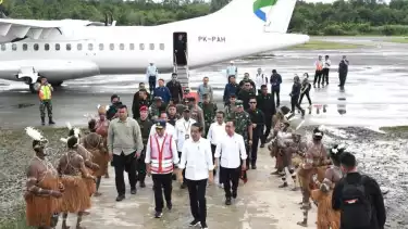 Asmat, tvOnenews.com - Pengembangan Bandar Udara Ewer yang berada di Distrik Agats, Kabupaten Asmat, Provinsi Papua Selatan ditujukan untuk melayani kebutuhan transportasi masyarakat di Kabupaten Asmat. Pernyataan tersebut disampaikan Presiden Joko Widodo ketika meresmikan pengembangan Bandar Udara Ewer, Kamis (6/7/2023).