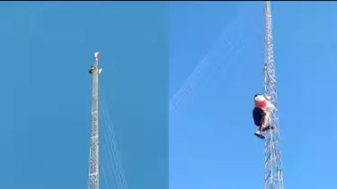 Makassar, tvOnenews.com - Bak spiderman, seorang pemuda karang taruna di Desa Uludaya, Kecamatan Mallawa, Kabupaten Maros, Sulawesi Selatan, nekat panjat tower tanpa alat pengamanan.