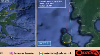 Ternate, tvOnenews.com - Kantor Pencarian dan Pertolongan Basarnas Ternate, Maluku Utara (Malut) menyatakan, longboat berpenumpang lima orang penumpang on board dilaporkan tenggelam di perairan Sahu Kabupaten Halmahera Barat dan dua orang dilaporkan hilang.