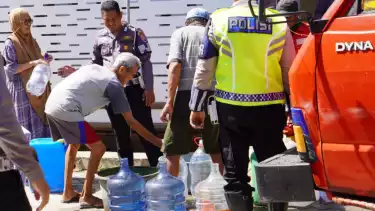 "Hari ini kami pemberian bantuan air bersih kepada masyarakat yang terdampak kekeringan di Kompleks Nusa Tamalanrea Indah (NTI) dengan mendatangkan mobil tangki Emergency Water Supplay," ujar Kasat PJR Ditlantas Polda Sulsel, AKBP Astu