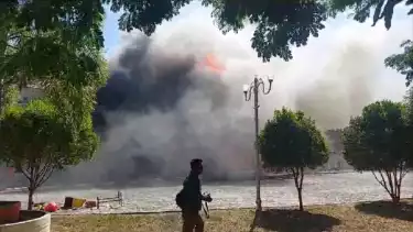 Pohuwato, tvOnenews.com - Kantor Bupati Pohuwato terbakar hebat setelah ribuan massa saat demo penambang Pohuwato di Kabupaten Pohuwato menyerbu kantor bupati hingga berakhir rusuh. Selain Kantor Bupati, sejumlah fasilitas di perusahaan Pani Gold Project (PGP) dirusak massa, pada hari Kamis (21/9/2023).