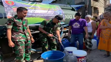 Makassar, tvOnenews.com - Sansidam XIV/Hsn menggelar kegiatan Jumat berkah berupa pendistribusian air bersih sebanyak dua mobil tangki kepada masyarakat di kelurahan Pampang, Kecamatan Panakkukang, Kota Makassar.