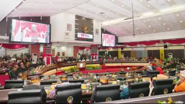 Makassar, tvOnenews.com - Pelaksanaan rapat paripurna HUT Ke-354 tahun Sulsel dengan tema "Era Baru Sulawesi Selatan Menuju Indonesia Maju" berlangsung di Kantor DPRD Provinsi Sulsel, Kamis (19/10/2023).