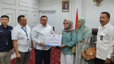 Makassar, tvOnenews.com - Kementrian Agama RI menyerahkan asuransi ekstra cover senilai Rp125 juta ke Keluarga Jemaah Haji asal Sulawesi Selatan yang wafat di dalam pesawat saat proses ibadah haji tahun 1444 H/2023 M.