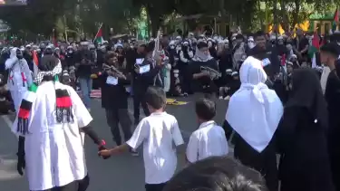 Makassar, tvOnenews.com - Aksi bela Palestina terus di suarakan di seluruh Indonesia, di kota Makassar sendiri ratusan orang dari berbagai organisasi kemanusian menggelar aksi solidaritas untuk palestina dengan teatrikal kekejaman zionis Israel terhadap warga seeta anak-anak Palestina di depan Monumen Mandala Kota Makassar, Minggu (12/11/2023).