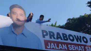 Makassar, tvOnenews.com - Calon Wakil Presiden (Cawapres) nomor urut 2 Gibran Rakabuming Raka menyapa masyarakat Makassar di acara "Jalan Sehat Satu Putaran 2 Kilometer" yang di selenggarakan Relawan Milineal Prabowo Gibran Sulawesi Selatan.