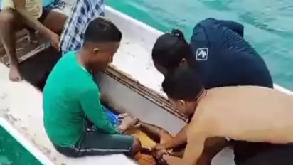 Buton, tvOnenews.com - Hilang saat melaut, seorang nelayan warga Desa Ambuau Togo, Kecamatan Lasalimu Selatan, Kabupaten Buton, Sulawesi Tenggara, ditemukan sudah tidak bernyawa di kedalaman tiga meter dengan kondisi kaki kanan terjerat tali jangkar di perairan Karang Kapota, Kabupaten Wakatobi.