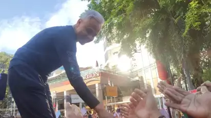 Makassar, tvOnenews.com - Calon Presiden (Capres) nomor urut 3 Ganjar Pranowo singgung soal adanya bentrok massa pro Palestina dan organisasi kemasyarakatan (ormas) saat hadiri jalan sehat perjuangan di Jalan Jenderal Sudirman, Kota Makassar, Sulawesi Selatan, Minggu (26/11/2023)