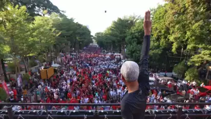 Makassar, tvOnenews.com - Calon Presiden Ganjar Pranowo dalam sebulan terakhir ini telah melakukan tiga kali kunjungan ke Makassar, Sulawesi Selatan. Kedatangan Ganjar kali ini adalah untuk menghadiri kegiatan jalan sehat perjuangan, yang dihadiri oleh puluhan ribu simpatisan.