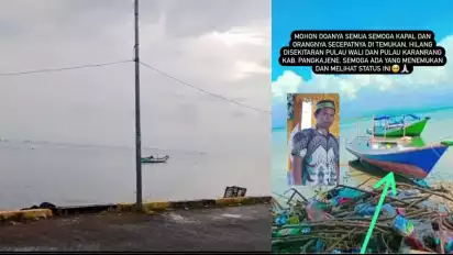 Pangkep, tvOnenews.com - Seorang nelayan asal Pulau Satando Tupabiring Utara, Kabupaten Pangkep, Sulawesi Selatan, bernama Saiful (31) dilaporkan hilang selama dua hari. Nelayan tersebut melaut di sekitar perairan Pulau Wali dan Pulau Karanrang Pangkep.