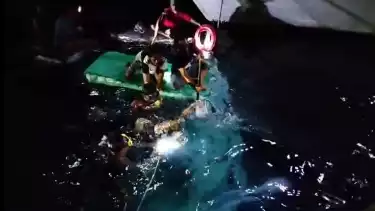 Makassar, tvOnenews.com - Setelah melakukan pencarian selama empat jam lebih, tim sar gabungan berhasil mengevakuasi semua penumpang KM Resky yang terbalik di perairan Kabupaten Pangkep, Sulawesi Selatan. Dari 15 penumpang 10 orang selamat, 5 orang ditemukan meninggal dunia, termasuk seorang balita.
