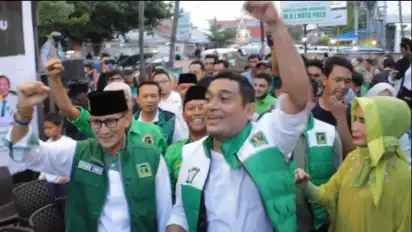 Palu, tvOnenews.com - Ketua Bappilu Partai Persatuan Pembangunan (PPP), Sandiaga Salahuddin Uno, mengadakan temu kader dengan sejumlah pengurus dan caleg PPP di Kota Palu, Sulawesi Tengah, Minggu sore (03/12/2023). Sandiaga Uno optimistis, dengan PPP, pasangan Capres Cawapres Ganjar Pranowo dan Mahfud MD, akan memperjuangkan penciptaan lapangan kerja bagi anak-anak muda.