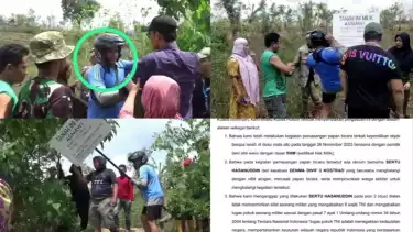 Gowa, tvOnenews.com - Pemasangan papan bicara yang dilakukan oleh warga desa Mata Allo diatas lahan seluas 14 Hektar, di desa Mata Allo, kecamatan Bontomarannu, kabupaten Gowa, Sulawesi Selatan, berlangsung ricuh. Seorang oknum anggota TNI datang ke lokasi bersama sejumlah warga dari desa Sokkolia mengamuk dan mencabut papan bicara yang dipasang warga desa Mata Allo. Kejadian ini terekam kamera warga hingga viral dan berujung pengaduan warga desa Mata Allo ke Danpondam XIV Hasanuddin.