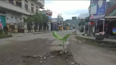 "Warga di sekitar jalan yang rusak parah ini menanam pohon pisang karena kecewa dengan pemerintah yang hingga kini belum juga memperbaiki jalan yang rusak parah ini," ujar Irma salah seorang warga yang tinggal tepat di jalan yang kondisinya rusak parah.