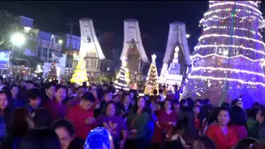Toraja Utara, tvOnenews.com - Puluhan pohon natal dari berbagai bahan daur ulang di depan Gereja Toraja Jemaat Elim Rantepao, Kabupaten Toraja Utara, Provinsi Sulawesi Selatan, yang dihiasi berbagai lampu warna-warni disambut antusias ribuan warga.