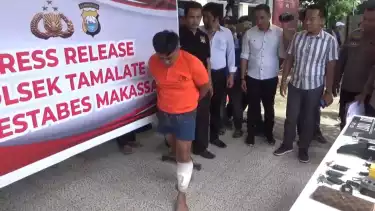 Makassar, tvOnenews.com - Ardi Dg Rani (32), pelaku perampokan spesialis perumahan mewah yang kosong di Kecamatan Tamalate, Kota Makassar, Sulawesi Selatan (Sulsel), ditembak saat ditangkap di tempat persembunyiannya tidak jauh dari lokasi pencurian, di kawasan perumahan elit di Tanjung Bunga, Makassar. Jumat (5/1/2024).
