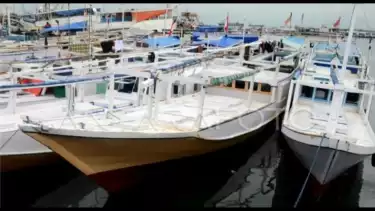 Makassar, tvOnenews.com - Sejumlah kapal kayu pengangkut bahan pokok harus bertahan di Pelabuhan Rakyat Paotere, Kecamatan Ujung Tanah, Makassar, Sulawesi Selatan sebagai dampak cuaca ekstrem dengan ketinggian ombak 2,5 meter sampai empat meter di Perairan Selat Makassar.