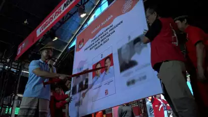 Dalam kesempatan tersebut, Kaesang juga memperagakan cara mencoblos pasangan Prabowo – Gibran agar dapat menang satu putaran pada Pilpres 2024.