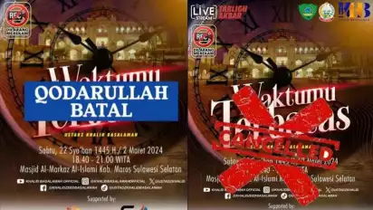 Maros, tvOnenews.com - Belum mendapatkan izin, tabligh akbar Ustadz Khalid Basalamah, yang direncanakan pada Sabtu (2/3/2024) di Masjid Al Markaz Al Islami Maros, Sulawesi Selatan, batal digelar.