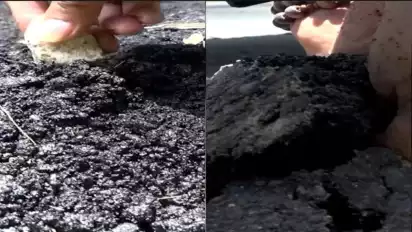 “Suhu panas aspal tidak sesuai sehingga ada ronggahan," tulis akun Ciduq Karurukan dalam komentar video tersebut.