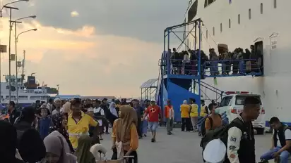 Baubau, tvOnenews.com - Memasuki H-12 menjelang lebaran Idul Fitri, ribuan pemudik mulai memadati pelabuhan Murhum Baubau, Sulawesi Tenggara. Ribuan penumpang KM Nggapulu yang mudik lebih awal tiba di pelabuhan pada Jumat (29/3/2024) sore.