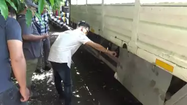 Dalam pemeriksaan ini polisi berhasil menemukan bbm subsidi jenis solar yang disembunyikan dalam empat tangki cadangan yang telah dimodifikasi sedemikian rupa dan disembunyikan di bawah kolong truk.